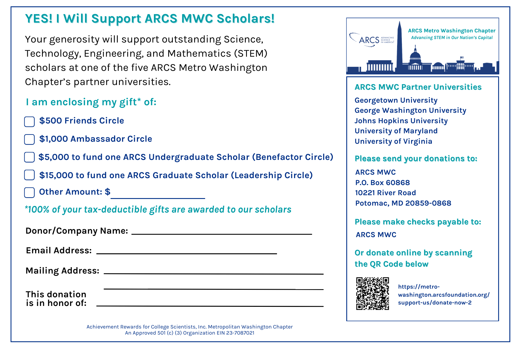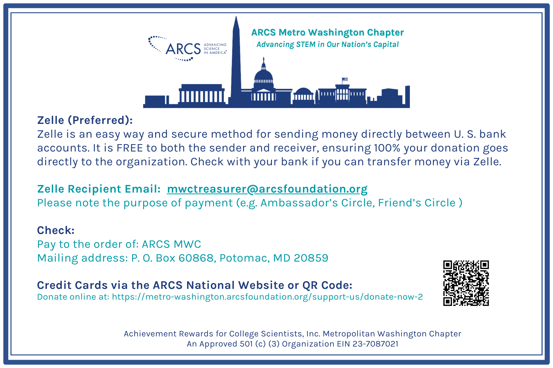 Support ARCS Foundation, Washington Metro