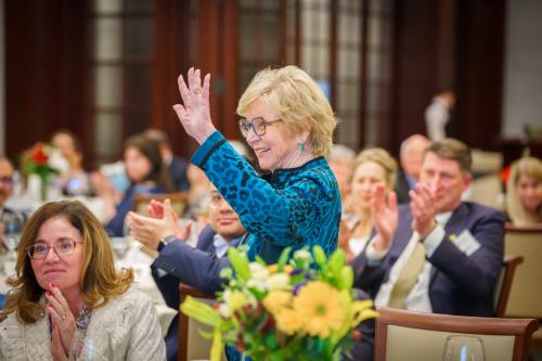 Attendees mingled outside in the balmy spring evening before enjoying a delicious dinner. Two scholars and a scholar alumnus underscored the evening’s emphasis on innovation by summarizing their amazing, cutting-edge research made possible through ARCS-MWC support. Members and guests enthusiastically participated in the Fund-A-Scholar Challenge, generously contributing towards the evening’s overall success in generating enough funding to support one ARCS-MWC PhD Scholar.